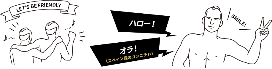 岩手県民なら英語とスペイン語(ウルグアイ)だけでOK!「ハロー!」や「オラ!(スペイン語)」と先に声をかけるトライを。