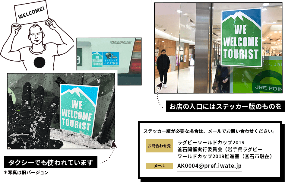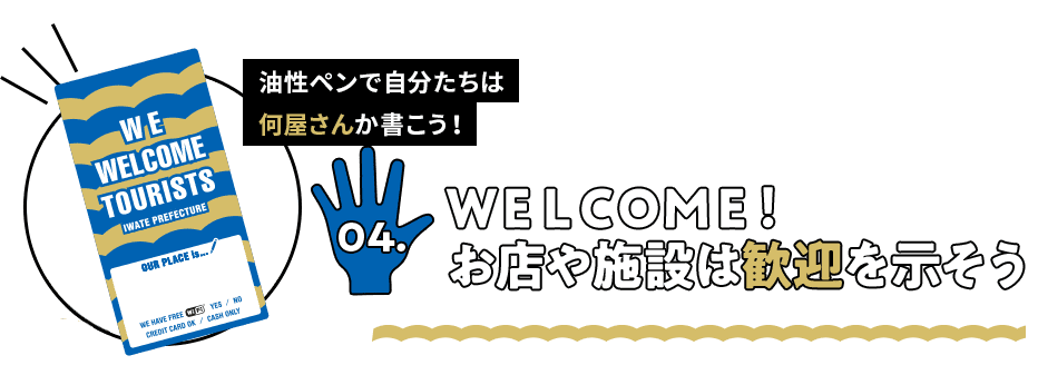 だから、岩手や釜石の宿泊施設・飲食店・お店は、このサインを入り口等にドーンと!