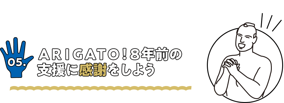 大会期間中に外国人と接するとき忘れてはいけない「8年前はアリガトウ」の気持ち。 コトバでいうのが難しいなら、このサインを貼り出すのもアイデア。