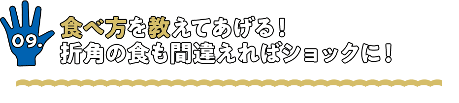 身振り手振りでいいです。近くに座っているみんなで、親切に食べ方を教えましょう!