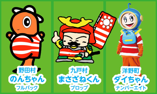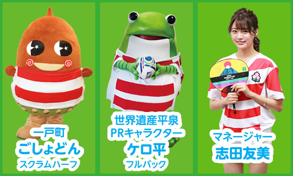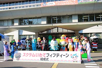 「スクラムいわてフィフティーン」は、ラグビーワールドカップ2019™釜石開催に向けて、子どもから大人まで、オール岩手で楽しく盛り上がろうと、2018年8月に結成した岩手県内市町村のマスコットキャラクターによるラグビーチームです。
