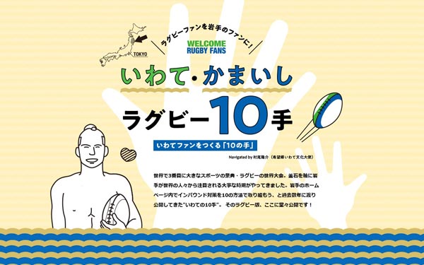 迎え入れる側のおもてなし活動の参考としていただく「いわて・かまいしラグビー10手」を公開しています。