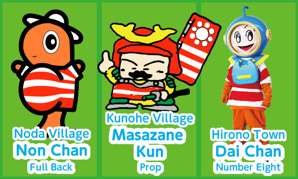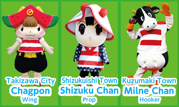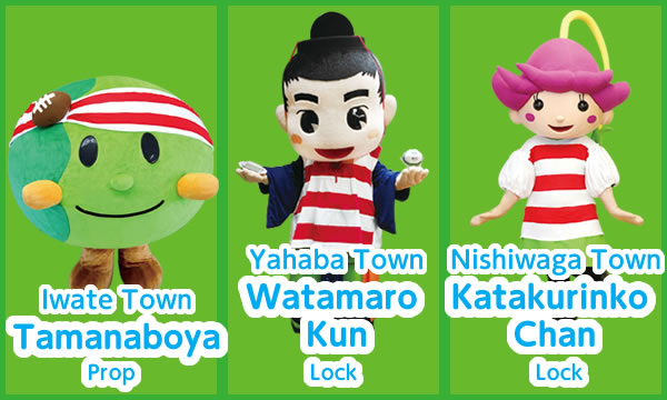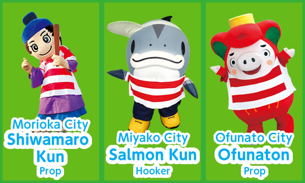 As a rugby team of city/town/village mascots from municipalities throughout Iwate, formed in August of 2018, the Scrum Iwate Fifteen are here to drum up fun and excitement among kids and adults throughout the prefecture towards the Kamaishi Rugby World Cup 2019™.