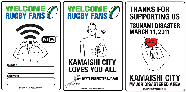 ● 35 rugby version icons, made with supervision by Ryusuke Murao, who created the "10 Ways to Make Travelers Happy" hospitality guide towards visitors from overseas. (including thanks for support towards the Great East Japan Earthquake and Tsunami disaster)